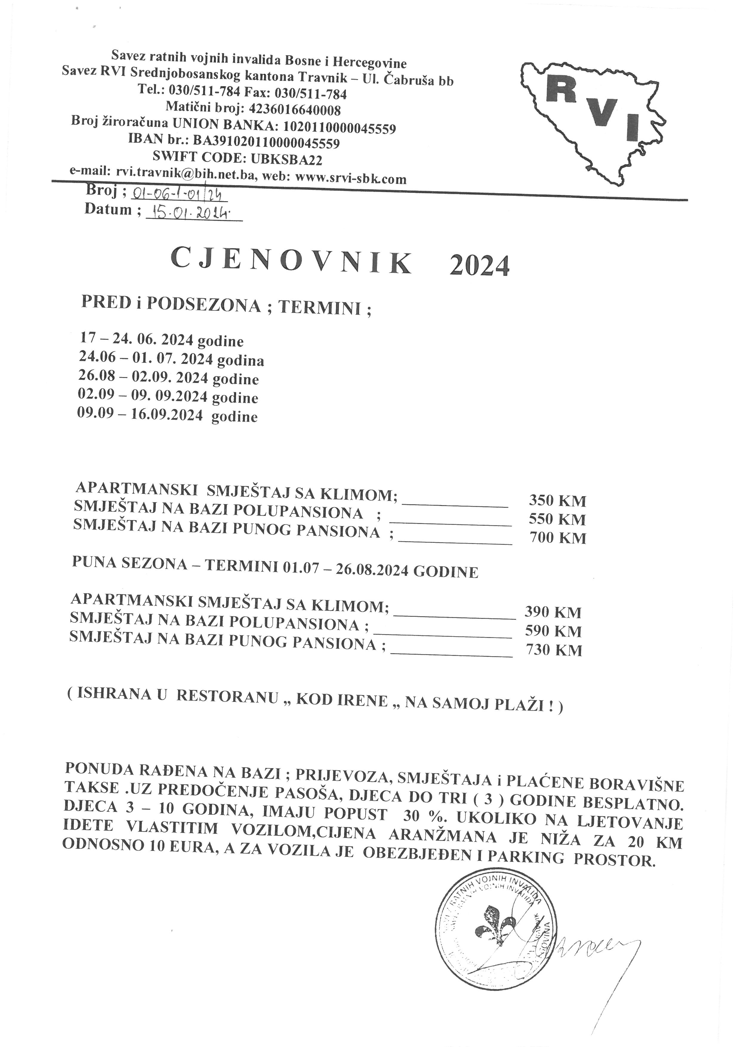 PONUDA SEZONA LJETOVANJA 2024. GODINE